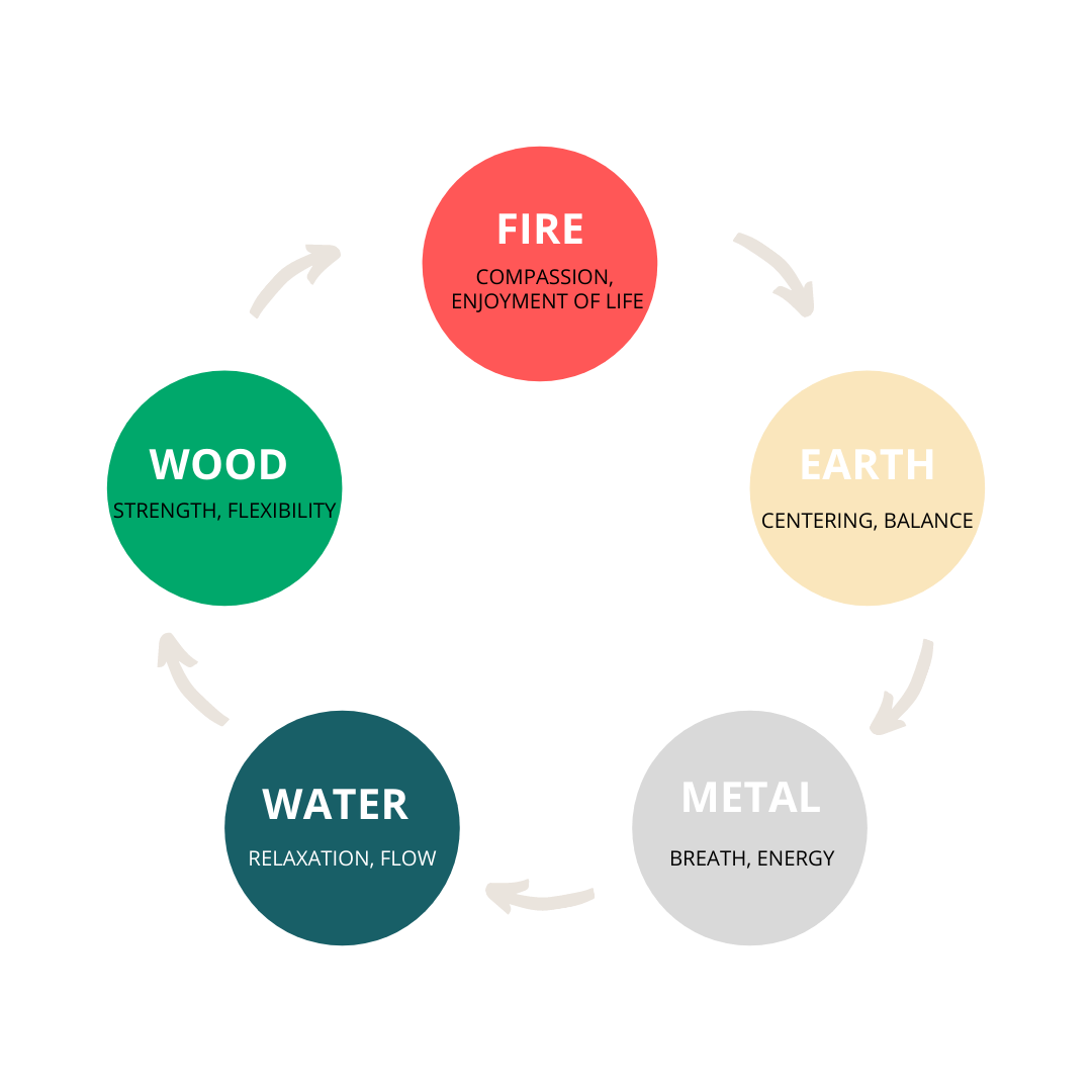 Mental health issues or negative emotions can be associated with one of the five different energy movements: Earth, Metal, Water, Wood and Fire.